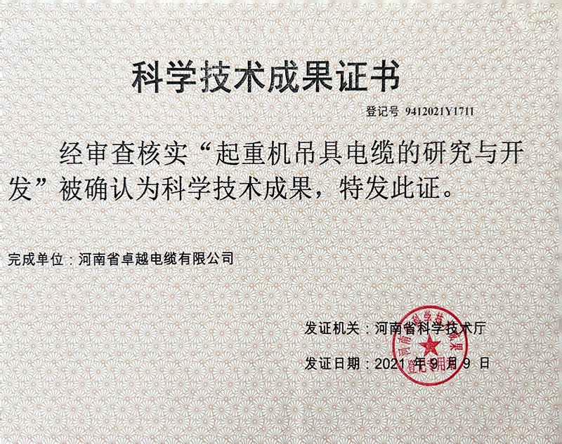 科學(xué)技術(shù)成果證書